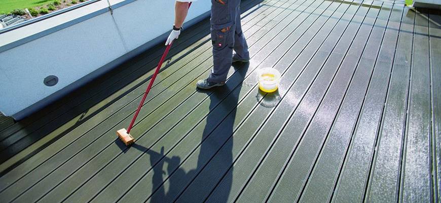 Ухаживать за террасной доской очень просто. Для очистки от грязи и пыли используют специальные моющие средства или промывают струей воды со шланга. Покрытие из декинга не теряет своей привлекательности на протяжении всего срока использования и не нуждается в дополнительной защите.