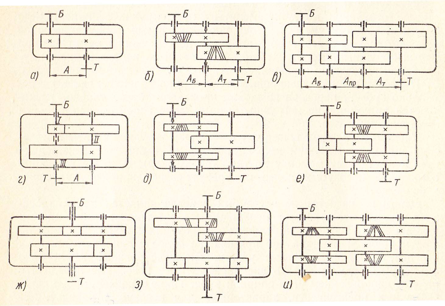 На рисунке ниже представлены кинематические схемы конических редукторов: