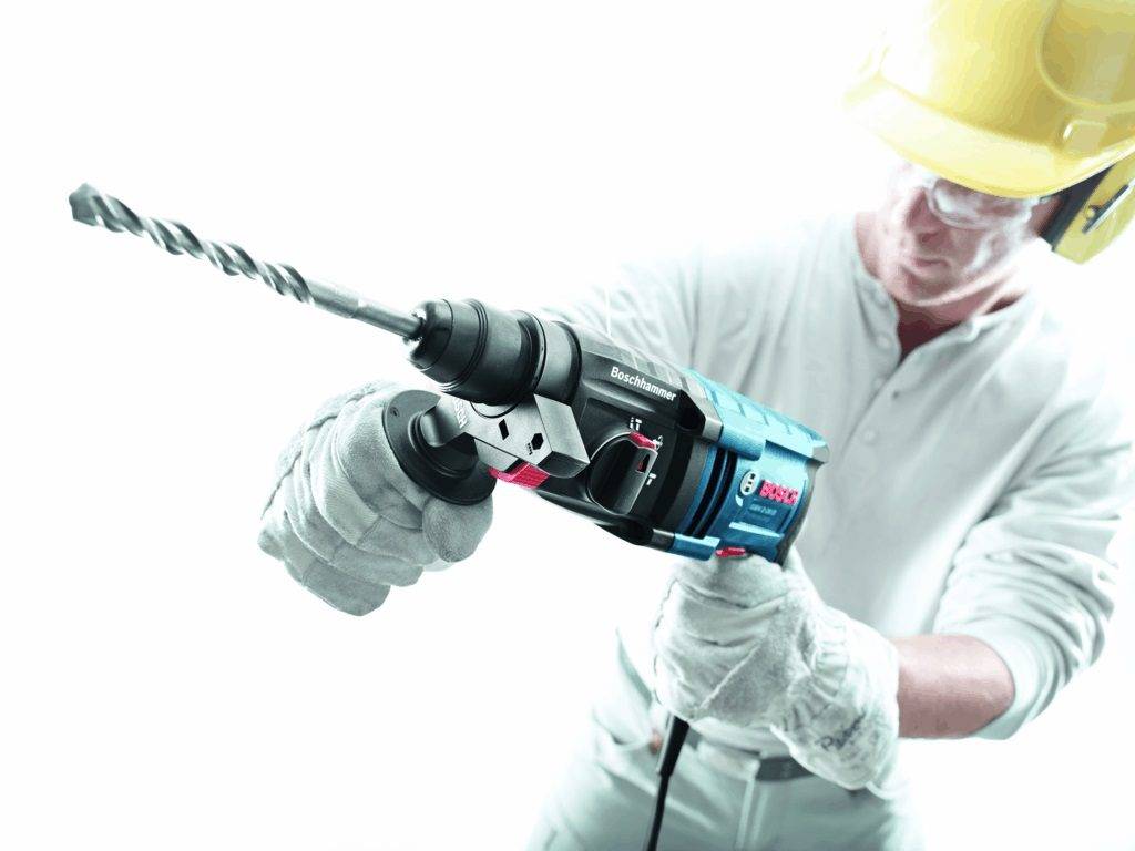 Мощная модель с двигателем 1500 Вт, который позволяет сверлить в бетоне отверстия диаметром до 32 мм.