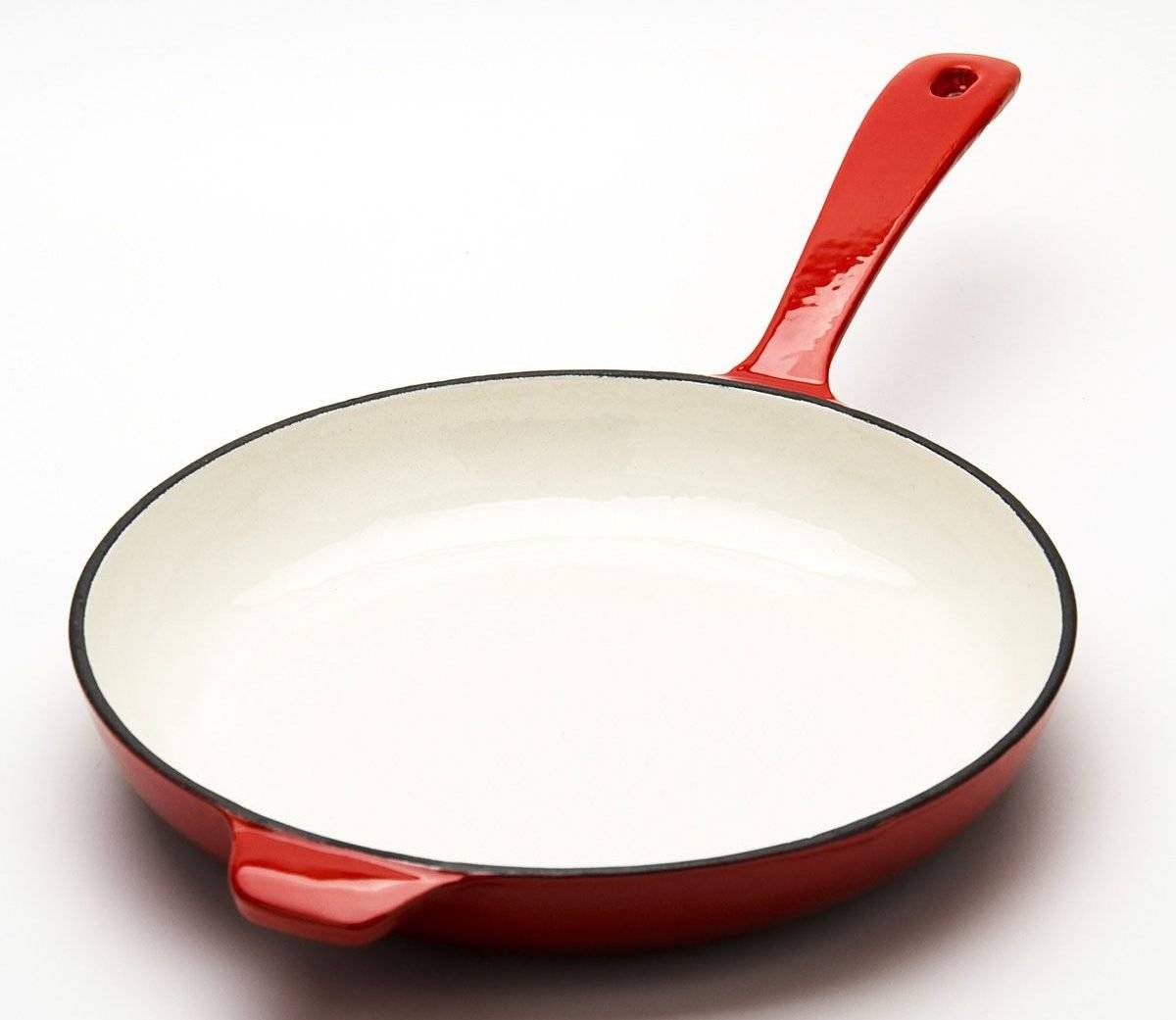 - Чугун. Это экологичный материал с естественным антипригарным покрытием, который любят за прочность и длительный срок использования. Он нагревается и остывает медленно, но равномерно, чем предотвращает пригорание пищи и положительно сказывается на ее качестве. Изделия из чугуна достаточно тяжелые, могут требовать тщательного ухода и уязвимы перед коррозией, но имеют все шансы прослужить долгие годы. В чугунных сковородах не рекомендуют хранить продукты.
