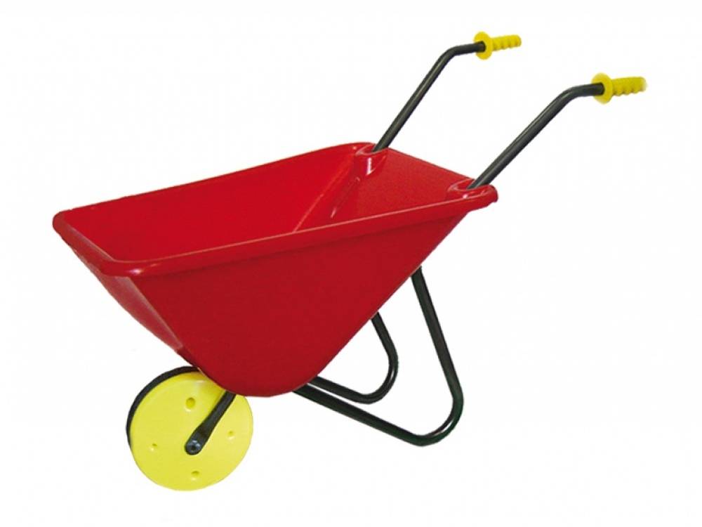 - Садовая тачка – имеет простую конструкцию. В основном используется для перевозки растений, органических отходов и удобрений. Она может быть из металла или пластика. Последний плохо приспособлен для перевозки стройматериалов. Если все же решено использовать тачку для таких работ, пластик следует армировать.