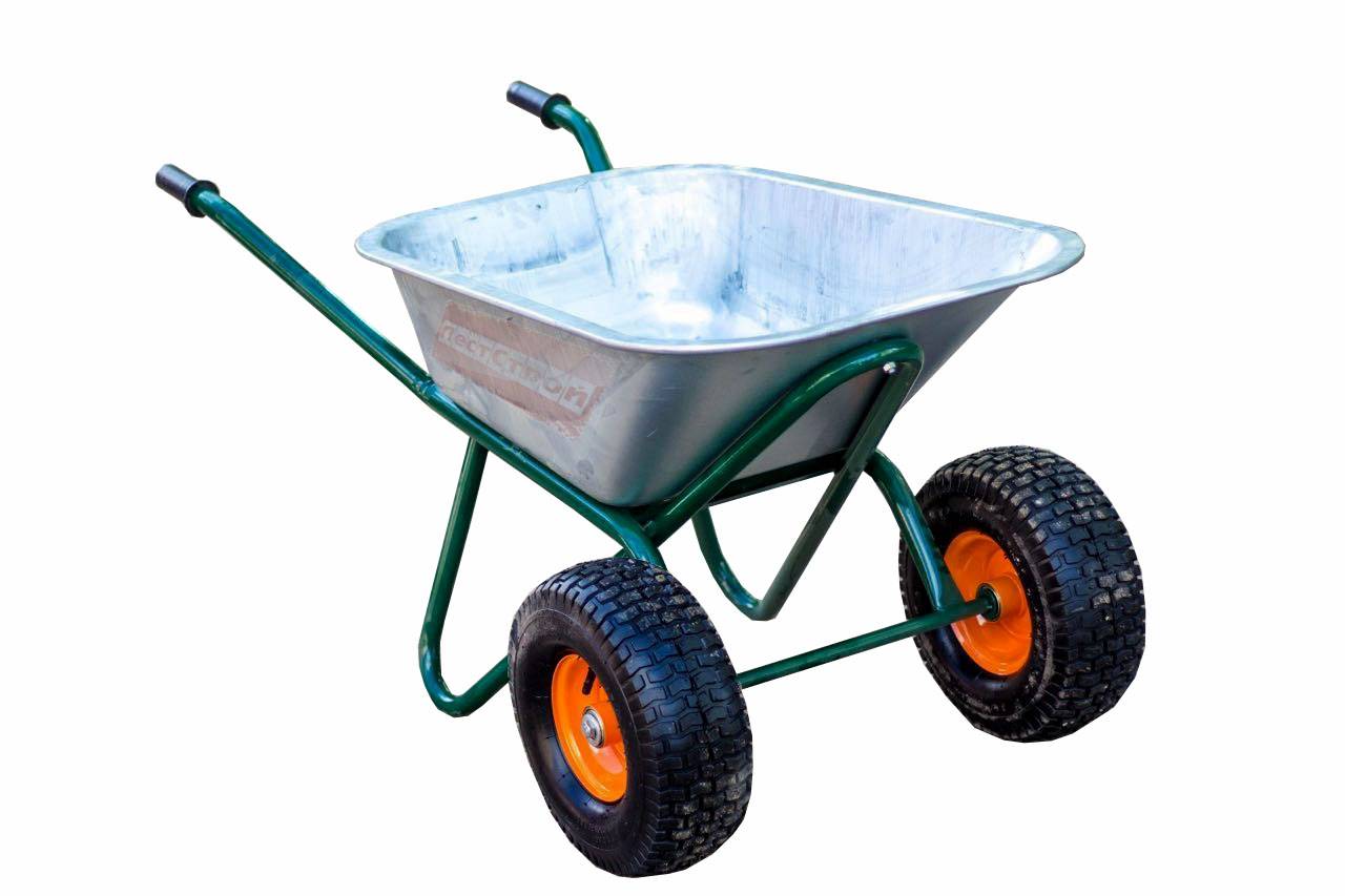 Двухколесная модель тачки для сада оснащена двумя колесами, которые держатся на оси. Тяжелая и прочная рама из стали предназначена, чтобы перевозить много материалов и удобрений.