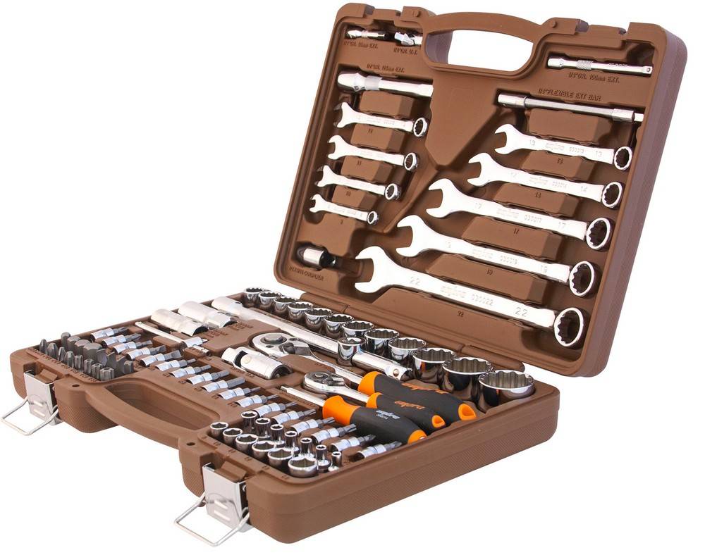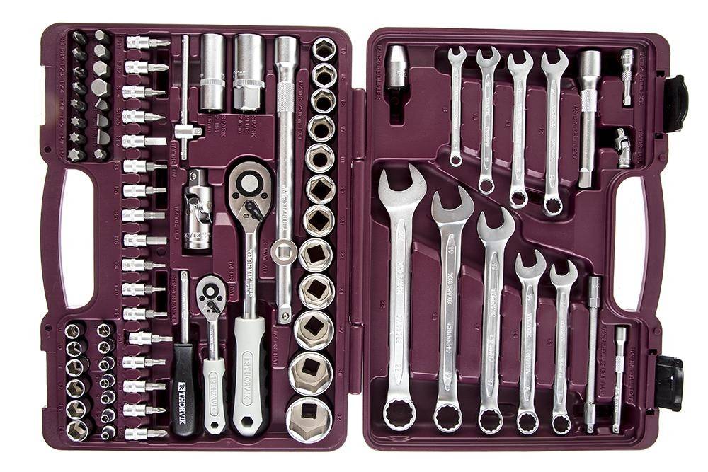 Один из самых полных наборов, который позволяет разобрать авто по винтику и собрать его обратно. Комплект состоит из 101 предмета, среди которых весьма продвинутые наборы отверток, ключей, бит и торцевых головок от 4 до 32 мм.