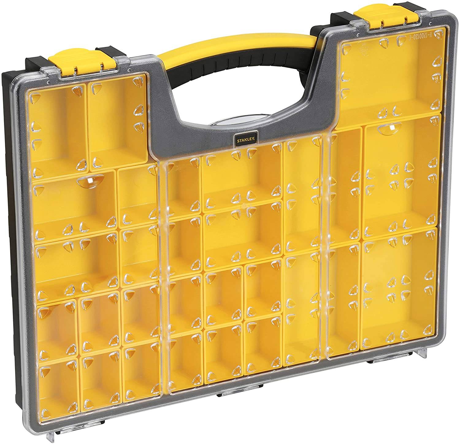 - Stanley FatMax – самый продуманный. Функциональный, раскладывается на три секции. Крышка оборудована защелками. Нижний отсек вмещает массивные инструменты.
