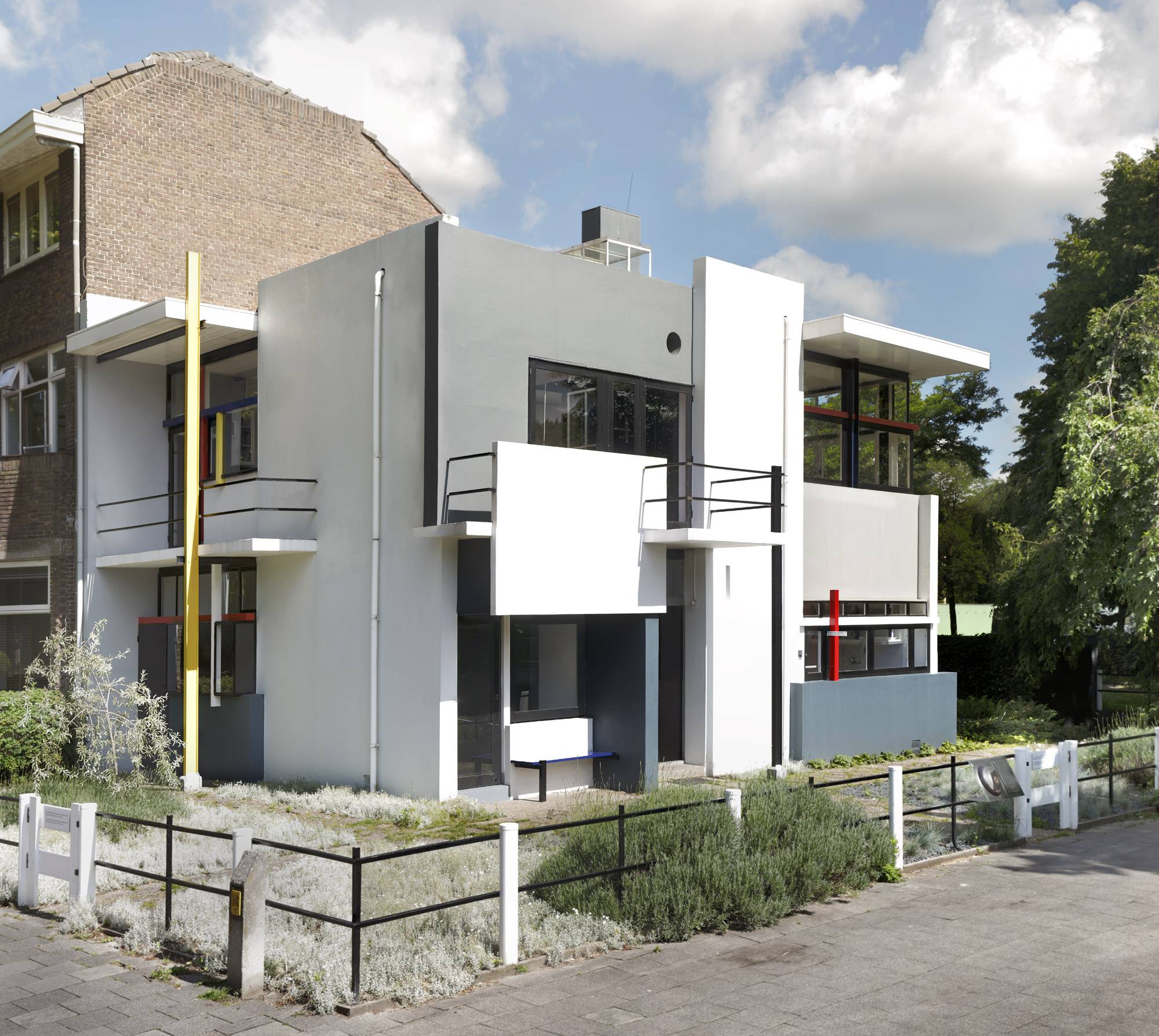 Дом спроектирован в соответствии с принципами неопластицизма и голландского художественного объединения «Де Стейл», членом которого был Ритвельд. Характерные черты этого направления: стремление к универсальности, строгая геометрия форм, художественная чистота и строгость. Дом выглядит как упорядоченная система черных, серых, белых, синих, красных и желтых элементов. Здание не служит фоном для абстрактной композиции, а само является ею.