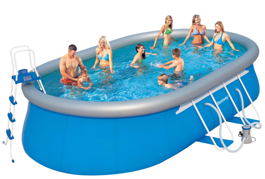 Этот вариант, также как и предыдущая модель, производится в Китае. Он отличается достаточно большими размерами. В овальной емкости помещается 16,6 м3 воды. Благодаря специальной подстилке устройство можно установить даже на неровной поверхности. В комплекте идет мощный насос, позволяющий относительно быстро наполнить водоем.