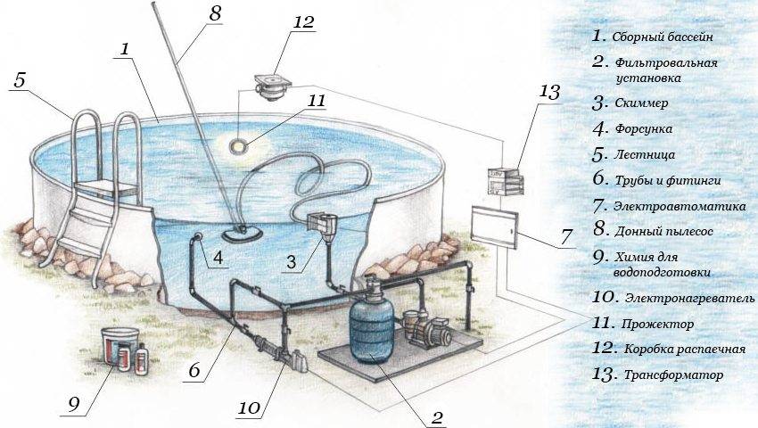 - фильтр-насос для циркуляции и очистки содержимого бассейна;