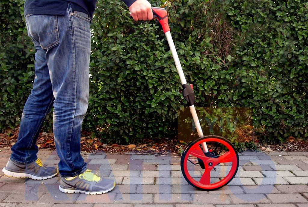 Когда человек проводит замеры на ровной поверхности, то необходимо подбирать изделие, которое обладает большим диаметром колеса. Это практичнее так как, из-за длины устройство быстрее катится, а рука меньше устает. Диаметр такого колеса составляет 31.847 см. Поэтому, как только колесо совершит полный оборот, то засчитается один метр. Такую конструкцию удобно использовать, так как при поломке счетчика, пользователь сможет продолжить работу, считая значения в голове.