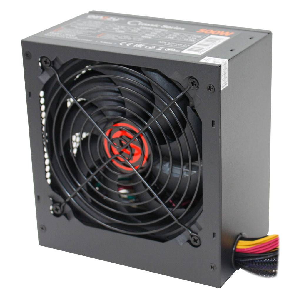 Легкий и дешевый блок питания Powerman PM-500ATX-F 500W из тонкого металла с пропускной мощностью 500 Вт относится к стандарту ATX 12V 2.2, не греется и не пищит, особенно если нагрузка меньше 200 Вт. При этом входное напряжение 200 – 240 В. Устройство весит 1,22 кг при габаритах 86х150х140 мм. Производителем установлена система охлаждения – один вентилятор 120 мм. Предусмотрена защита от перегрузки, короткого замыкания и перенапряжения. Есть несколько разъемов с проводами средней длины. Тип разъема для материнской платы – 20+4 pin. Его устанавливают в офисные компьютеры или для домашнего использования.
