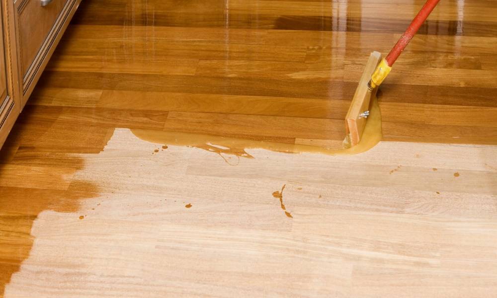 Деревянные полы, покрытые полиуретановым лаком, надежно защищены от влаги. Раствор придает полам блеск. Скорость высыхания его несколько раз превышает акриловые и водные составы.