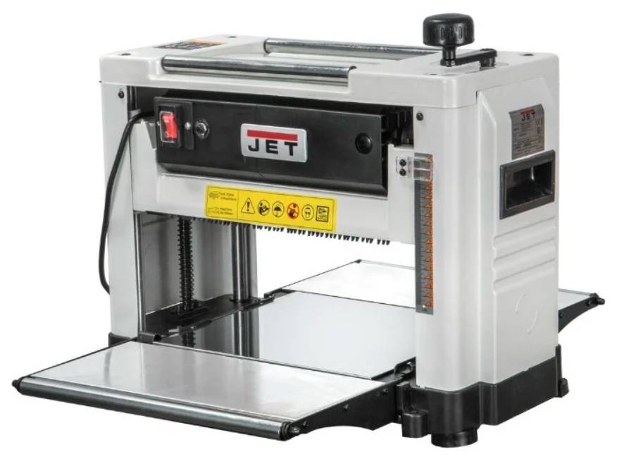 Комплектующие станка. Рекомендуется приобретать инструменты с цифровым дисплеем, подающими роликами из полимеров, ручками для транспортировки строгального оборудования и системой удаления опилок.