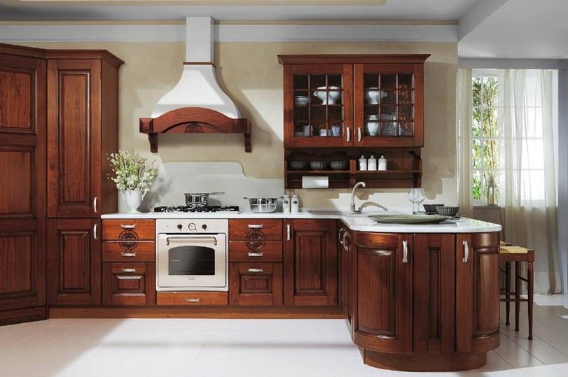 - Разнообразие изделий. Российские производители изготавливают кухни не только из ДСП и МДФ, но и из массива дерева. В качестве дополнения и украшения к гарнитуру можно заказать элементы из гранита, мрамора, стекла, металла. Благодаря современным технологиям, можно даже моделировать трехмерное изображение.
