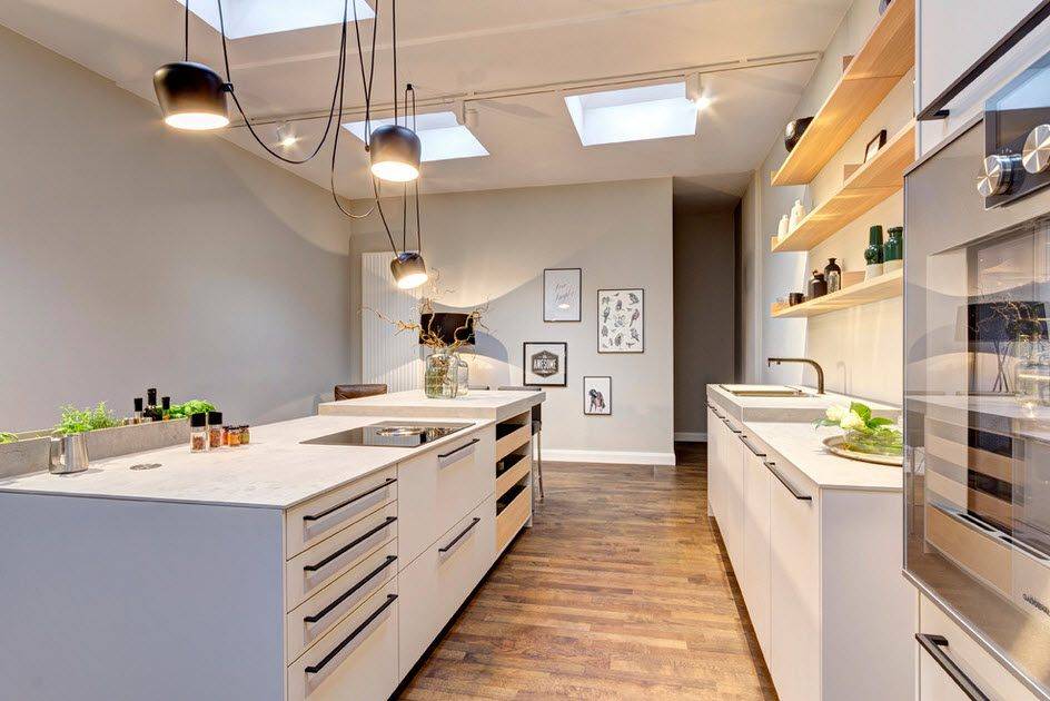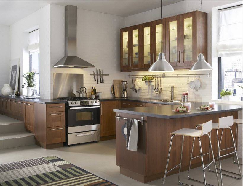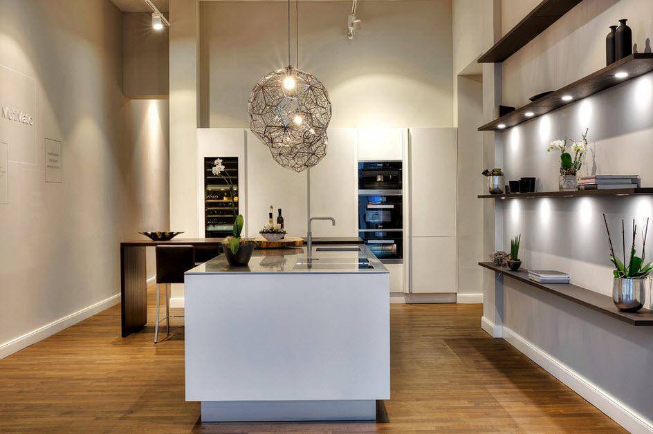 правильно подобранное освещение также поможет улучшить вид кухни