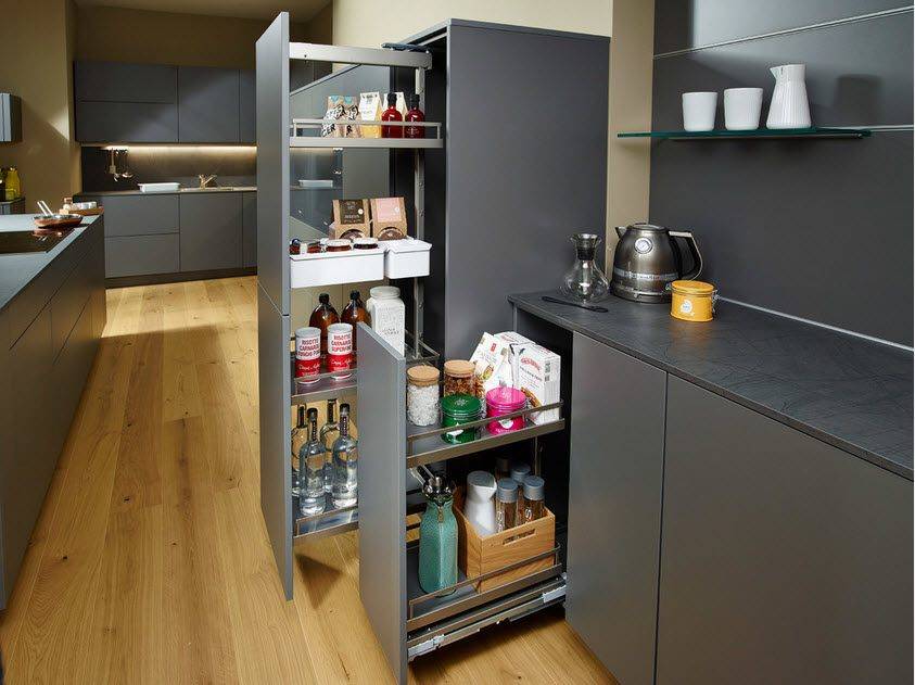 Есть куча разной фурнитуры для углов, для мусорных вёдер, для открывания по нажатию и т.д., но это уже не обязательно, и лучше мучайте вопросами про это конкретных изготовителей кухонь.