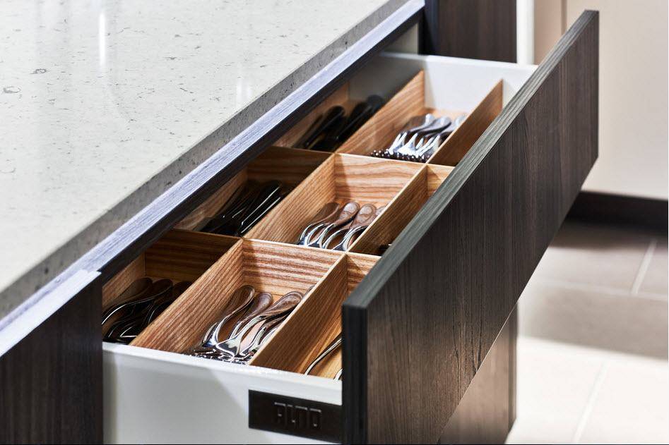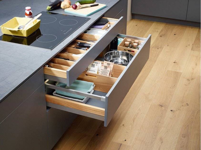 - Превосходная организация пространства в ящиках и за фасадом;