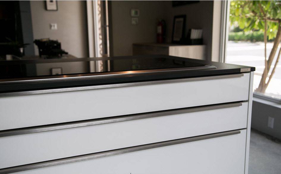«Жемчужиной» каталога Leicht является коллекция безручечных кухонных гарнитуров. Благодаря уникальной фурнитуре push-to-open («нажми для открытия») или специальному скошенному карту они не имеют рукояток. Выглядит это стильно, лаконично и действительно современно. Также, благодаря уникальным материалам, кухни имеют тонкие стенки и фасад – это экономит пространство в помещении, но при этом не снижает надёжность и долговечность.
