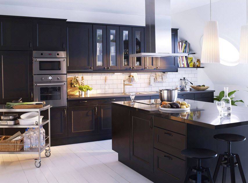 Функциональность. В кухне размещается наибольшее количество домашней бытовой техники: посудомоечные и стиральные машины, духовые шкафы и варочные поверхности, печи СВЧ — все эти устройства должны размещаться в кухонном гарнитуре максимально удобно для хозяйки. Гарнитур должен вмещать в себя всю посуду, используемую для готовки пищи, столовые приборы и прочие аксессуары.