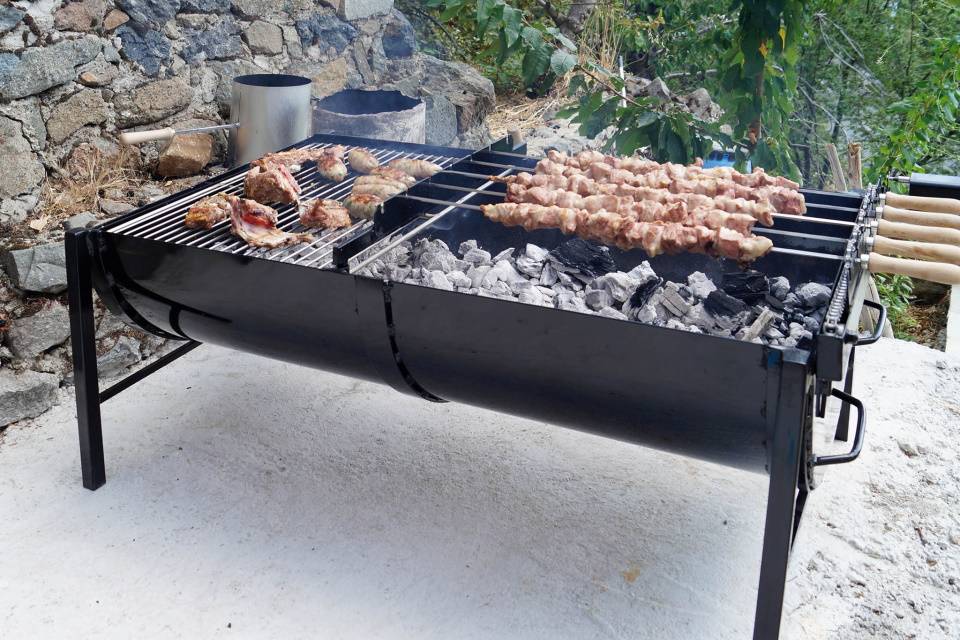 - Тип установки. Грили бывают стационарные и переносные. Первые – это громоздкие устройства, рассчитанные на одновременное приготовление большого количества продуктов. Их редко покупают домой, это техника для профессионального использования. Переносные – это устройства для дома. Они относительно компактные, их можно легко достать и спрятать, взять с собой на дачу.