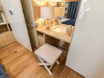 - классические гримерные, оснащенные яркой подсветкой и вместительными отделениями для косметики;