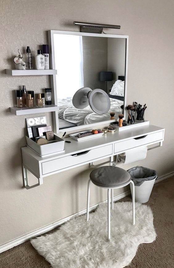 Спальня — это комната, в которой обычно больше места. Вот почему в ней легче разместить модный и функциональный туалетный столик. В спальне также обычно лучший доступ к естественному свету, что чрезвычайно полезно при нанесении макияжа. Дополнительным плюсом является то, что при подготовке к выходу вы не занимаете ванную комнату, поэтому ее могут свободно использовать другие члены семьи.