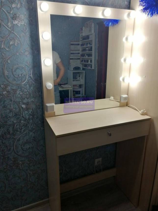 При выборе такой модели необходимо обращать внимание на ширину столешницы, она не должна быть маленькой. Иначе обладательнице будет проблематично рассмотреть свое отражение