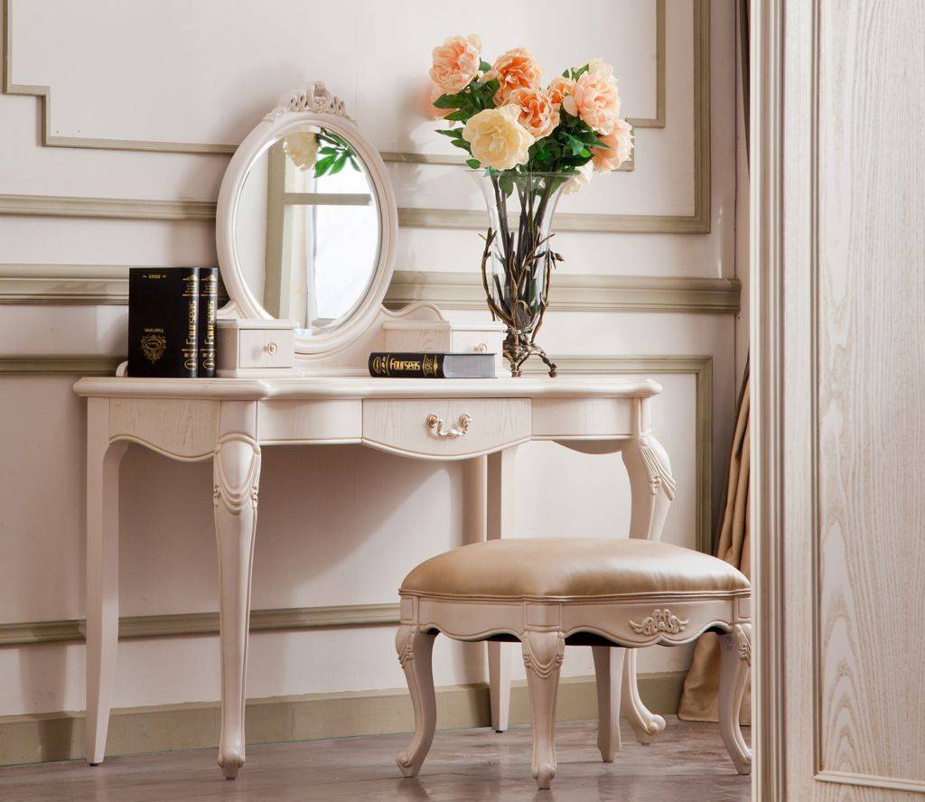 Выбирая туалетный столик, также стоит принять во внимание стилевое оформление помещения, в котором он будет стоять. Так, для спальни, выполненной в классическом стиле, подойдет столик со сдержанным оформлением, стандартной симметричной формы