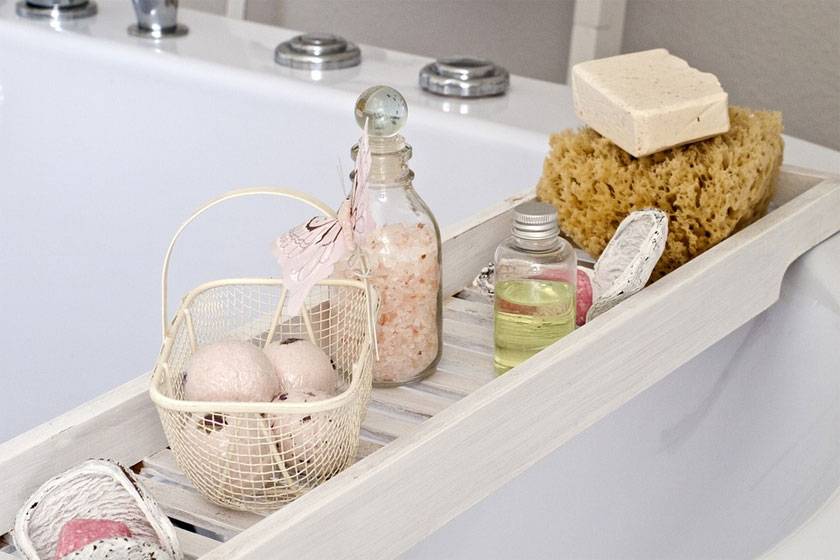 - В ванной комнате обработайте жидким моющим средством все керамические поверхности и оставьте на несколько минут. Затем уберите лишние предметы, грязные вещи отправьте в стиральную машину, повесьте свежие полотенца.