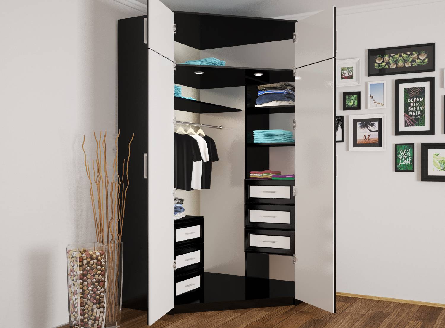 Угловой шкаф с распашными дверями — это выбор на любителя