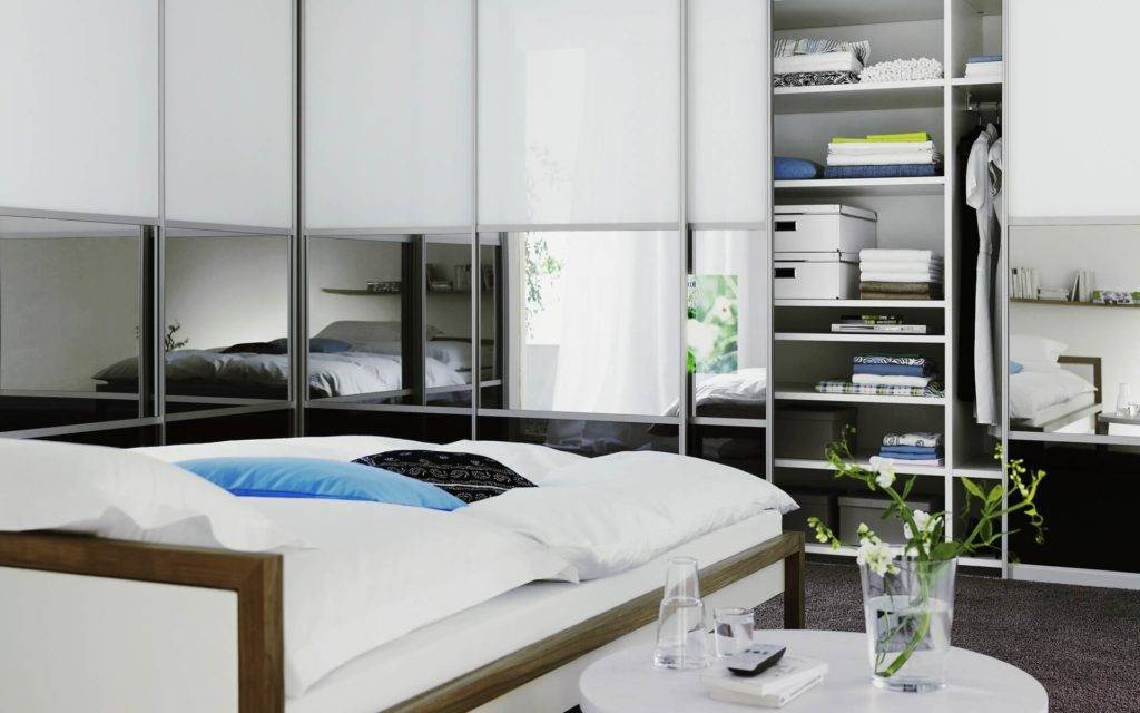- Зеркала. Визуально расширяют комнату, делают ее светлее. Содержимое шкафов при этом не видно.