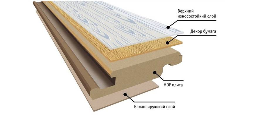 В стандартных изделиях эту часть делают из плиты МДФ. Однако есть модификации ламината с основой из полимерных материалов. Для изготовления применяют поливинилхлорид.