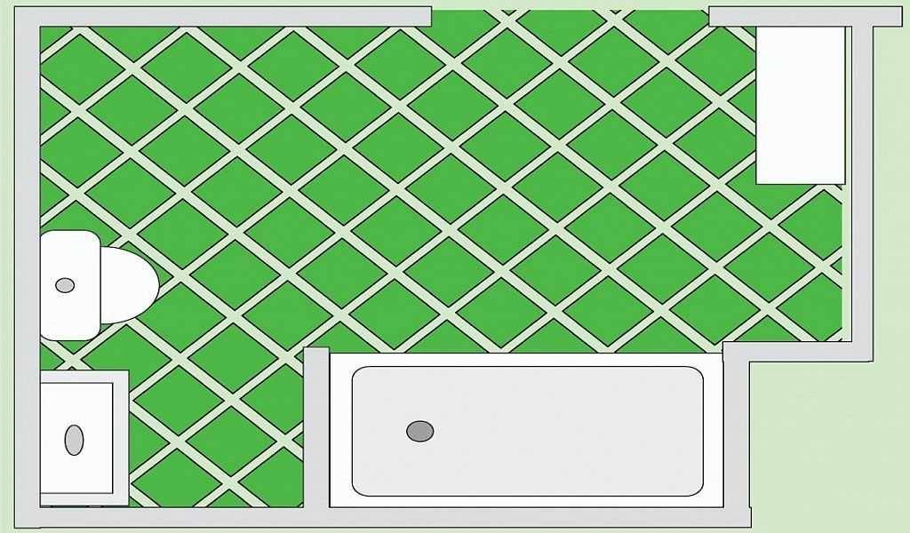 - Основным плюсом данной схемы является красота. Плитка, уложенная по диагонали, встречается редко и смотрится достаточно необычно;