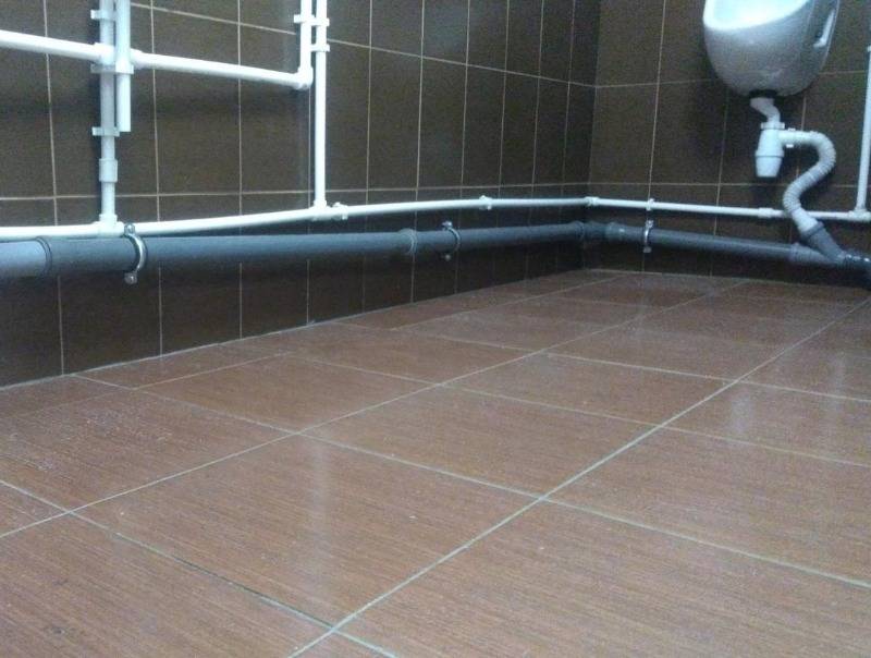 В ванных и туалетах обычно выкладывают требуемый уровень при помощи густого песко-цементного раствора. Все равно потом труба отделывается — ставится короб из гипсокартона, на который затем наклеивается плитка. Более современный вариант — укладывать трубы в штробу доступен не всем — в панельных домах нет такой толщины стен. При прокладке канализационных труб от кухни чаще пользуются подставками и клиньями. После уложенный с требуемым уклоном трубопровод фиксируется к стенам при помощи специальных держателей. Их устанавливают с шагом не более 40 см.