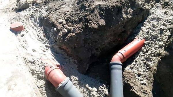 Трубами большого размера (110 и 200 мм) устраивают выводы для наружной канализации. При этом принцип прямолинейности трасс сохраняется. В случае, если избежать изменения направления канала нельзя, используют тройные переходники с выводом на поверхность ревизионной трубы с заглушкой, которая облегчит прочистку стока.