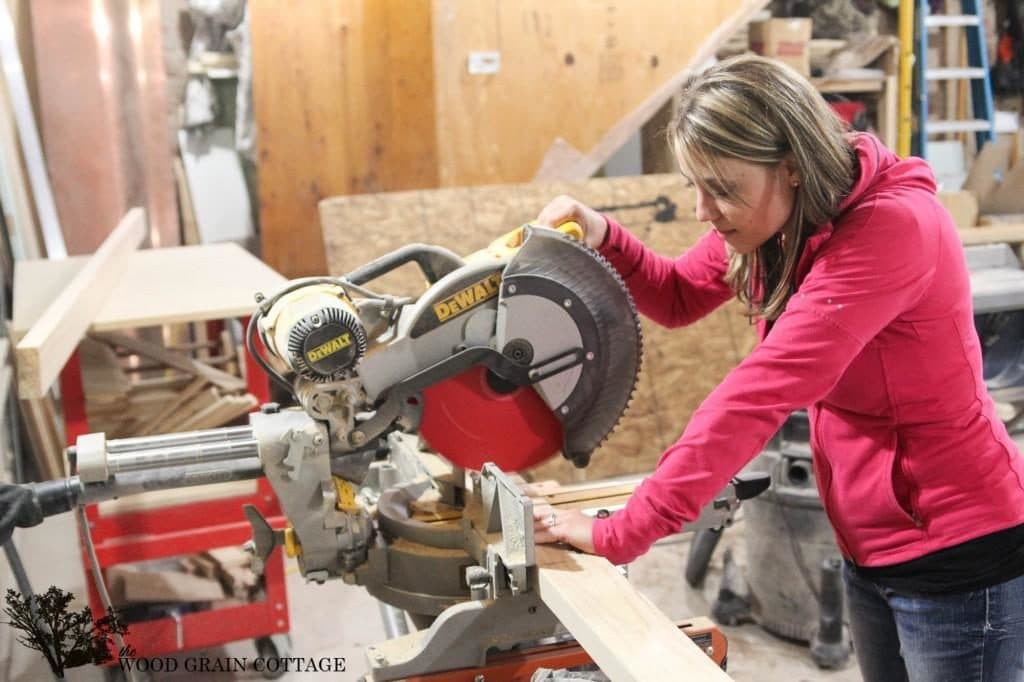 Все доски, имеющие длину 80см, распиливаем пополам. Доски длиной 120см, размечаем на три части по 38см и распиливаем, делая скошенный срез под углом в тридцать градусов.