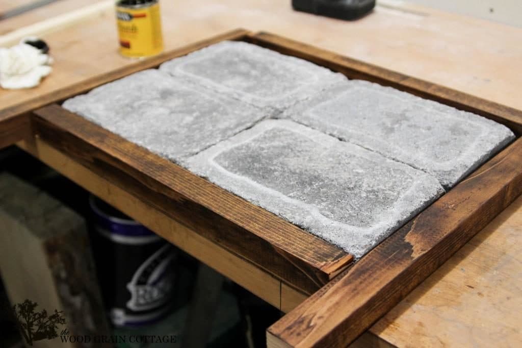 Нужно заготовить небольшие пеноблоки в виде брусчатки.