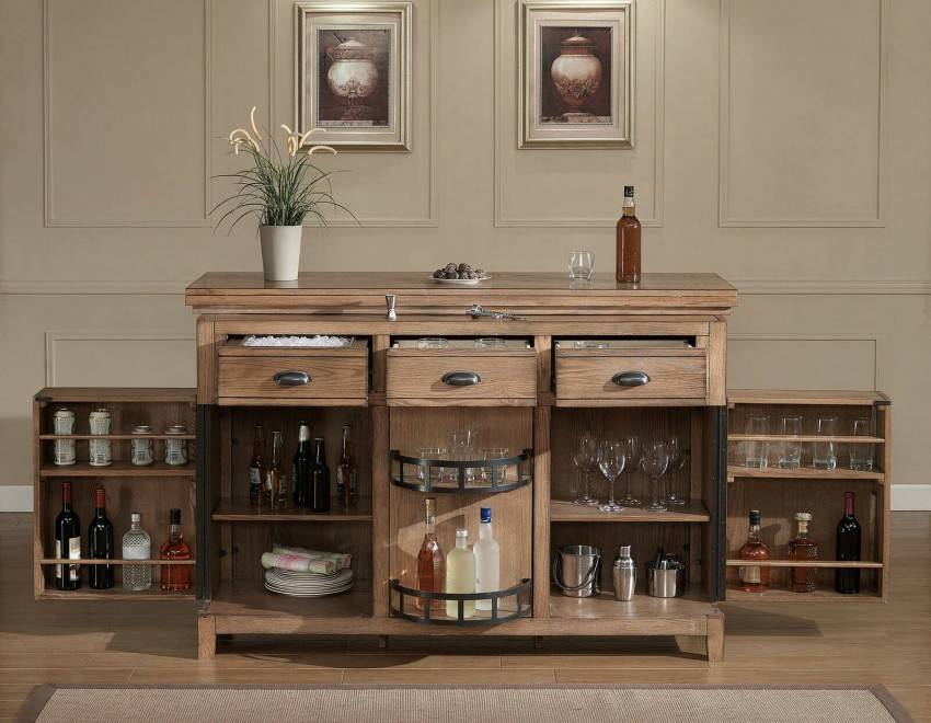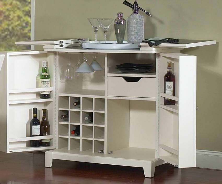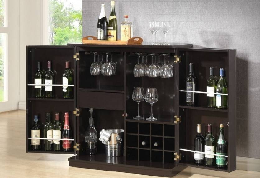 Самый простой способ выбрать домашний бар для напитков, посмотреть варианты мебели, представленные на фото. Чтобы хранить алкоголь в красивом шкафу, не обязательно его покупать, можно сделать своими руками, действуя по инструкции.