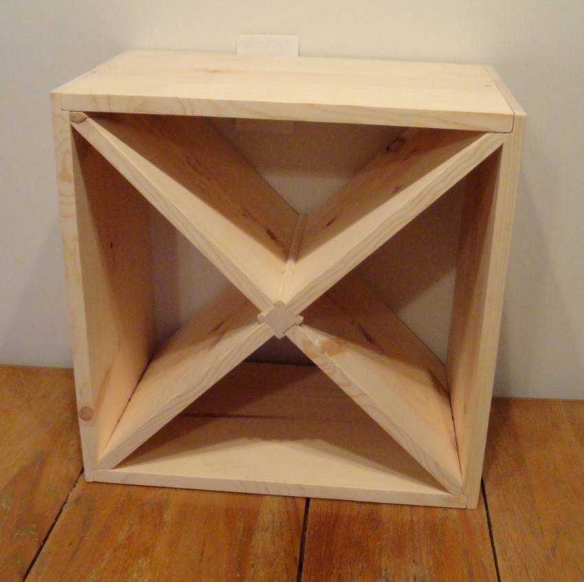 Мини-бар может быть очень простым – банальный шкафчик на несколько полочек. В этом случае мы сделаем каркас – 5 стенок, после чего добавим несколько полок – допустим две.