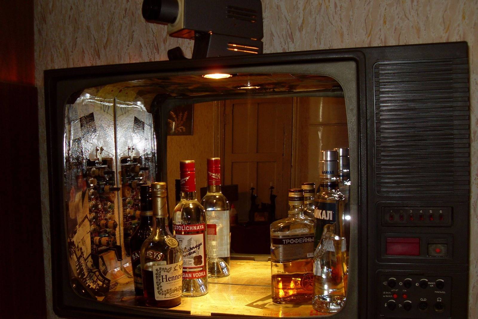 Всё ещё нет? Не нашли то, что искали? Варианты слишком изощрённые и дорогостоящие? Как сделать мини-бар своими руками из подручных материалов?