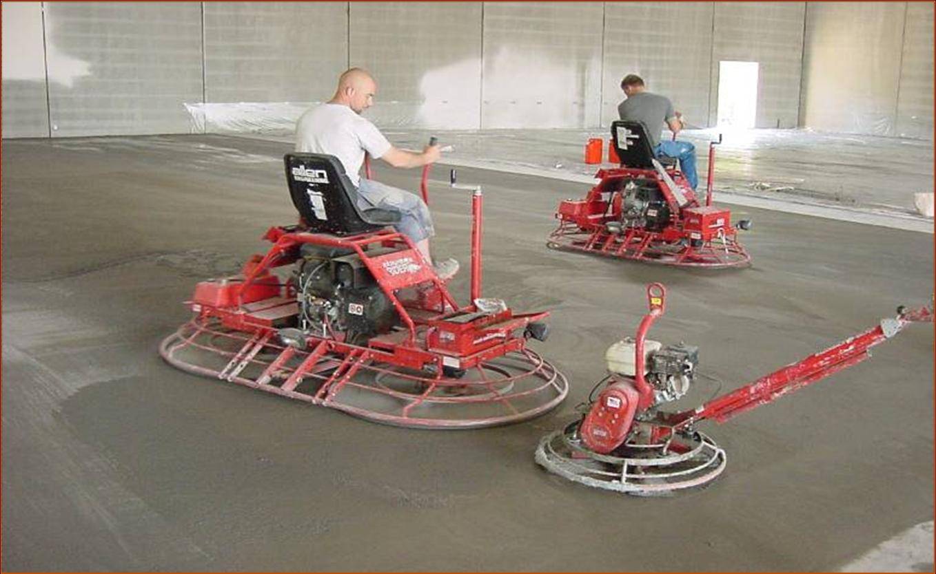 Это оборудование применяется только после того, как была проведена виброобработка. Контрольная рейка поможет убрать и разровнять все бугорки на еще пластичной поверхности. А корректирующая рейка поможет не только исправить деформацию, но и качественно заполнить впадины. Данное устройство еще на стадии свежего бетона позволит получить результаты, которые очень ускорят процесс полного выравнивания поверхности специальными средствами.