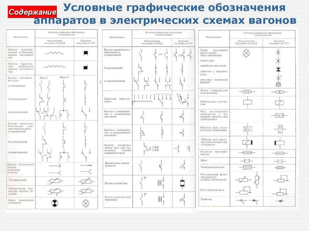 Все они отображаются латинскими символами в виде одной или двух букв. Линии связи, клеммы, разъемы, лампочки изображаются также, но, кроме того, присутствует большое количество радиоэлементов: резисторов, емкостей, предохранителей, диодов, тиристоров, светодиодов. В — Коллекторные электродвигатели постоянного тока: 1 — с возбуждением обмотки от постоянного магнита 2 — Электрическая машина с катушкой возбуждения В связке с электромоторами, на схемах показаны магнитные пускатели, устройства мягкого пуска, частотный преобразователь. Элементы, применяемые в общем порядке, обозначаются на чертежах, как квалификационные, характеризующие ток и напряжение, способы регулирования, виды соединений, формы импульсов, электронную связь и другие.