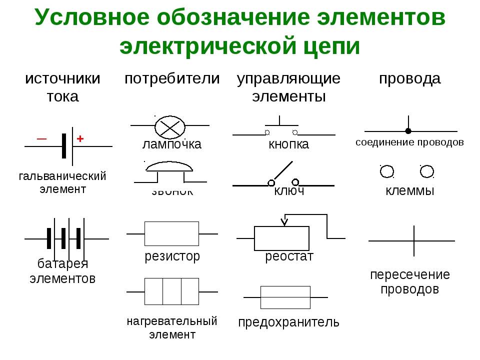 Это может быть освещение или изменение напряжения. Следующие таблицы содержат основные обозначения для такого типа электроэлементов.