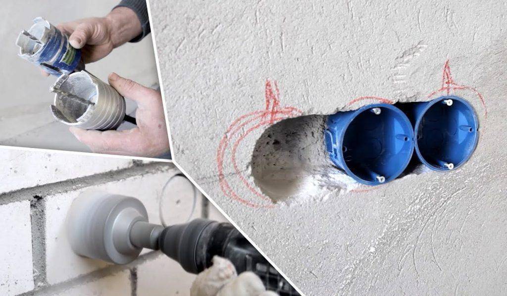Нельзя также вырезать отверстие ножом, если стена расположена в санузле или на кухне и обложена кафелем. В таких случаях применяют коронку с алмазной режущей кромкой (по бетону).