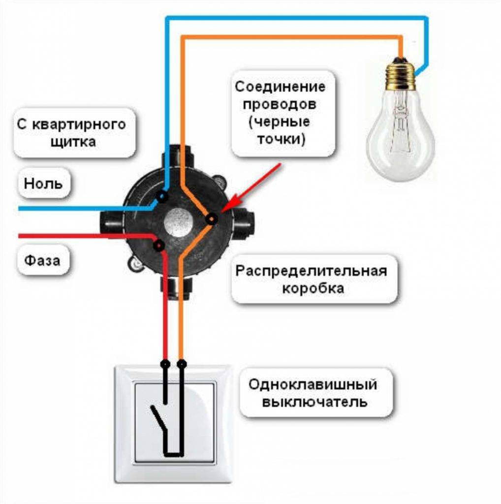 Самый простой вариант – установка одноклавишного выключателя. В этом случае к выключателю подходит лишь два провода: провод фазы и провод, идущий на прибор освещения.