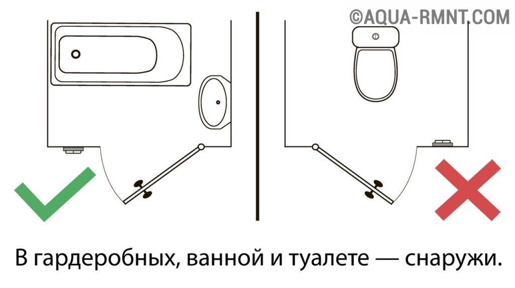 При монтаже выключателей важно учитывать безопасное их расположение. Элементы электросети должны располагаеться так, что дверь при открытии не задевает их. Размещение элементов на стене со стороны дверной ручки делает управление освещением удобным и безопасным