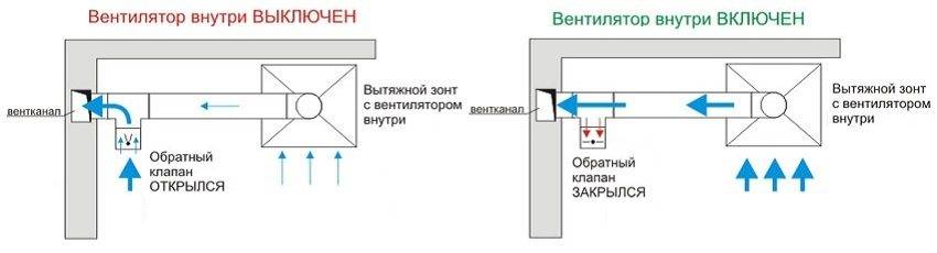 Во время строительства любого помещения, которое будет использоваться для проживания людей, делается и вентиляционная система. Когда вы или специалист, которого вы вызовите, осуществляет подключение кухонной вытяжки, то ее работа нарушается. Чтобы свести эти нарушения к минимуму, следует осуществить монтаж дополнительного короба, оснащенного спецклапаном. Его принцип работы крайне прост: когда вытяжка отключена, то клапан перекрыт крышкой, а воздух выходит самостоятельно. Когда идет приготовление пищи и вытяжка активируется, то клапан напорной силой воздуха от вентилятора перекрывает дырку естественной вентиляции. Подобный механизм имеет плюсы – нет тяги обратного типа.
