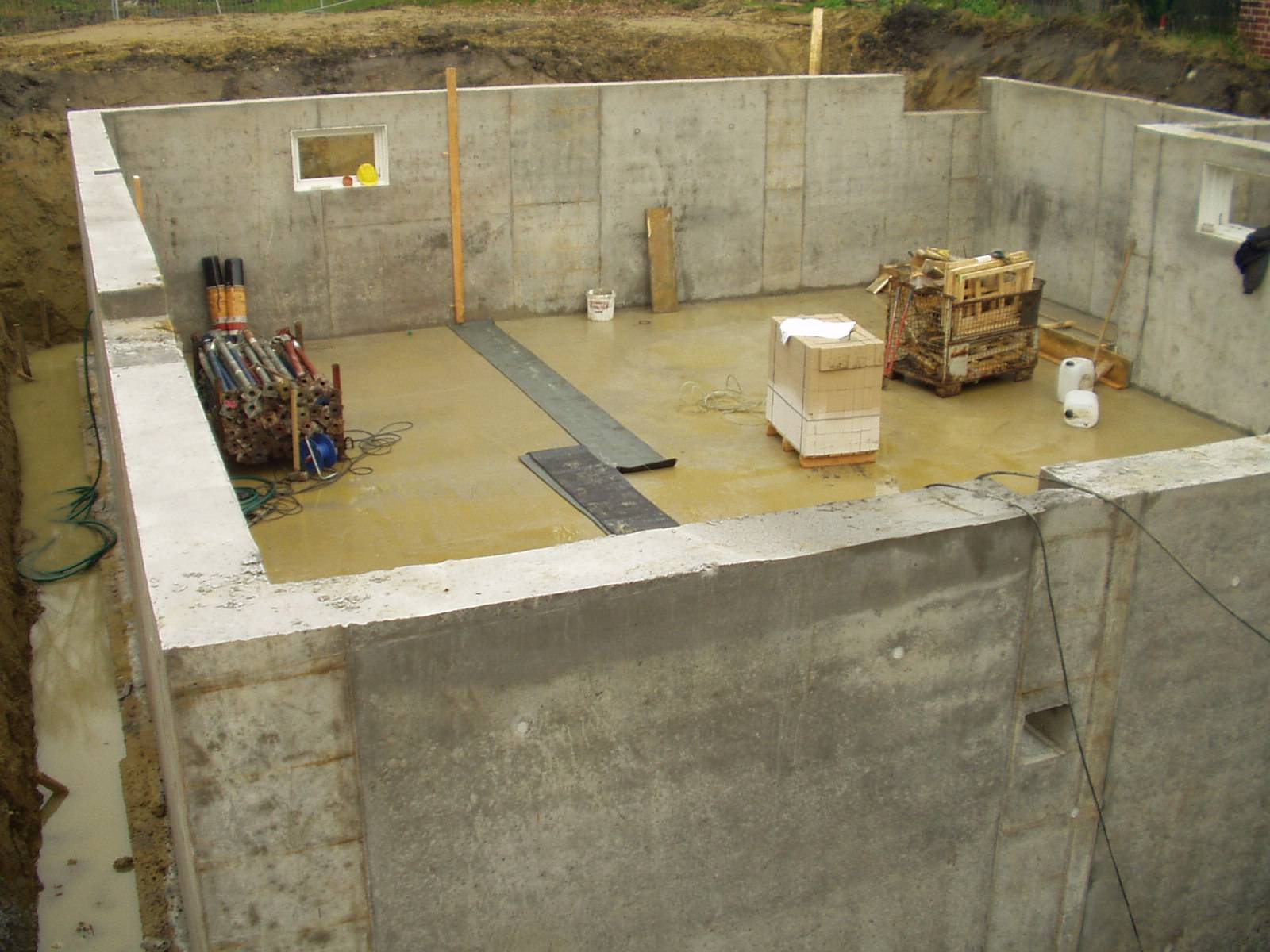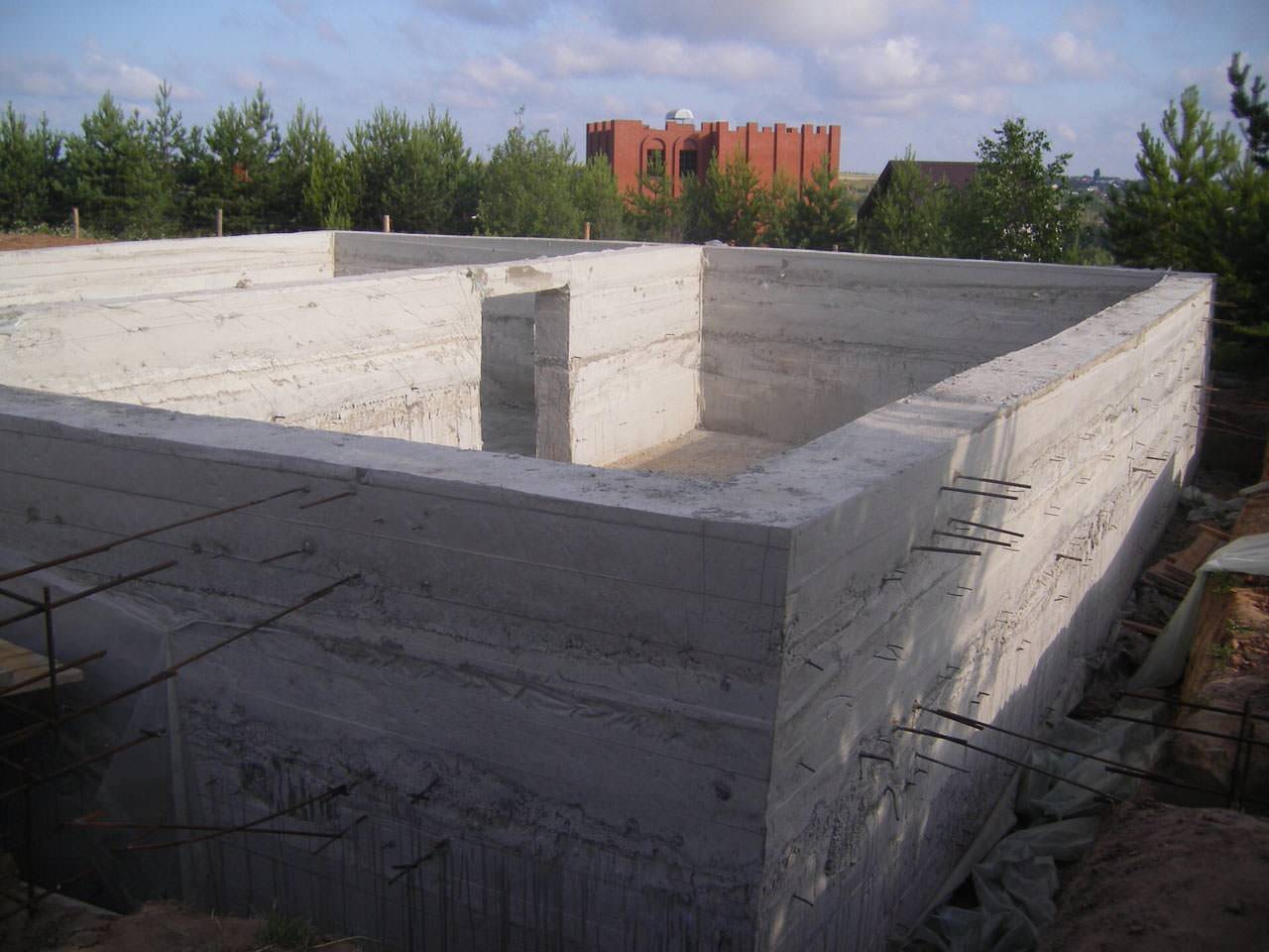 Стены фундамента сооружаются из бетонного раствора армированного металлическими конструкциями. Монолитный тип очень надежен, подходит к большинству видов почв, но при значительном заглублении требует хорошей гидроизоляции.
