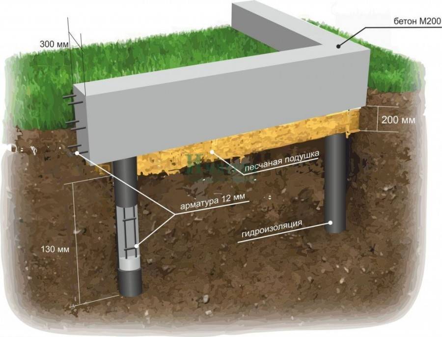 У высокого ростверка подошва возвышается над поверхностью земли, а низкий ростверк выполняется заглубленным в грунт.