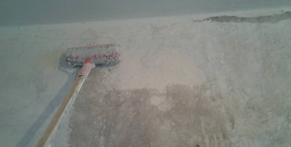 Подготовительные мероприятия включают удаление со стен остатков старого покрытия, устранение отваливающихся кусков. Крупные ямы, сколы, иные дефекты замазывают цементно-песчаной смесью. Трещины заделывают с применением армирующих лент. Всю поверхность стен или потолка грунтуют средством с глубоким проникновением, чтобы в дальнейшем улучшить сцепление.
