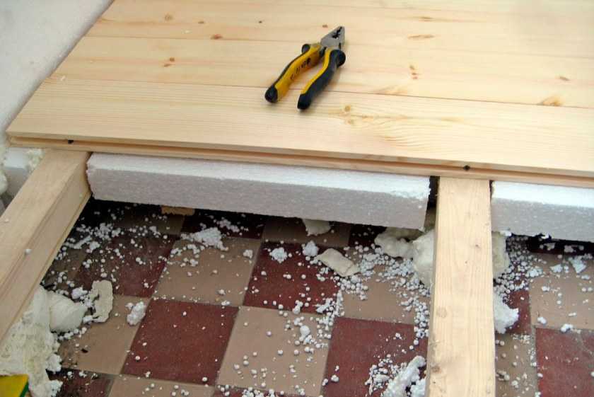 При малой нагрузке на полы допустимо утеплить балкон панелями пенопласта повышенной прочности, однако предпочтение все же стоит отдавать конструкциям с лагами.