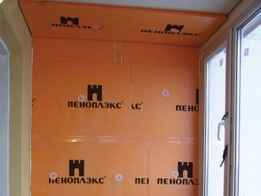 Чтобы сделать теплый балкон, для стен и потолка применяют лист пенопласта толщиной 50 мм, сопротивление теплопередачи которого составляет 1 м²·°С/Вт. Крепят листы специальным клеем или пластиковыми грибками, стыки обрабатывают монтажной пеной.